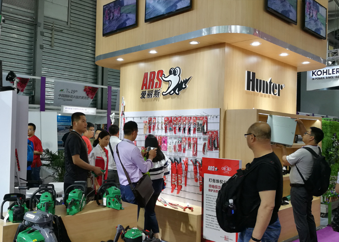 設(shè)備展示區(qū)更是吸引了眾多專業(yè)觀眾的眼光,綠友集團展示了自主研發(fā)、生產(chǎn)以及代理的剪草機、打藥機、灌溉系統(tǒng)、冷霧系統(tǒng)、電動車輛、粉碎機、無人機、園藝工具、植保用品等十多種產(chǎn)品。期間,綠友集團展位上一直人潮涌動,自產(chǎn)設(shè)備引來諸多關(guān)注。有問粉碎機的,有了解大型零轉(zhuǎn)彎剪草機的,有被冷霧系統(tǒng)所吸引的,有圍觀無人機的,更有很多觀眾現(xiàn)場購買愛麗斯園藝工具。綠友工作人員不知疲倦地解答著各種各樣的問題,也收獲了大量訂單。